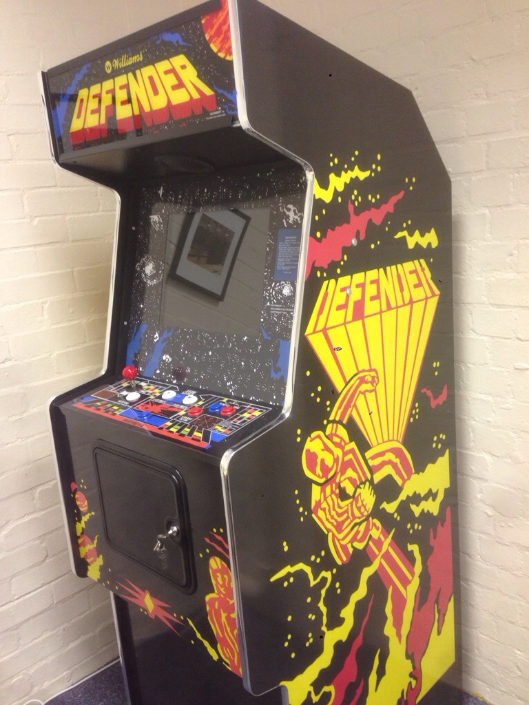 I've taken the day off to see my friend Eddie at his offices inside Bletchley Park - yes, the WWII secret code-breaking centre. It's going to be great to spend the afternoon with him as always, but there's a massive added benefit this time. Eddie has recently taken delivery of an original arcade copy of Defender. This is by some distance the best video game of all time. Well, it's my favourite anyway. I was 12 or 13 when it first came out and it's worth remembering that none of us had ever seen anything like it. We were the first digital generation. Other than LED calculators and James Bond's watch, no-one had seen anything that even glowed. And here came these games, placed in cafés and seedy arcades. Rows of stand-up machines in darkened rooms that lit up with fast moving lights and pulsed with 8-bit rhythms years before techno. Defender stood out for many reasons. It was the first sideways-scroller, had sound effects that still sound phenomenal today and... it was incredibly hard. When playing it you really felt plugged into the machine. It had five buttons and a joystick which meant both hands were permanently attached to the controls and the speed and colour and ever-present threat of imminent death meant the whole thing was an adrenaline rush. The creator, Eugene Jarvis, is a legend and also created Stargate (the sequel), Joust and the also incredible Robotron 2084. That's knocking on 30 years ago, but I'm unapologetically excited about a nostalgic afternoon of blasting batters, dodging mutants and smart-bombing pods. Bet I'll still be rubbish at it though.