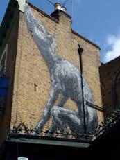 Around Peckham and Dulwich over the past couple of years, there have been a number of large pieces of street art on the sides of houses and buildings. They looked commissioned rather than done without permission so for a while I thought it was just part of the gentrification of the area. But then I found out it was cooler and cleverer than that. It seems that the sedate and splendid Dulwich Picture Gallery has been in on it. They invite artists to select a picture from the gallery and then use a detail from it to create an urban piece anew. How great is that? My favourite is at the end of our road - ROA has taken a detail of a dog defecating in a much more complicated oil painting and done it in his own style. More examples here